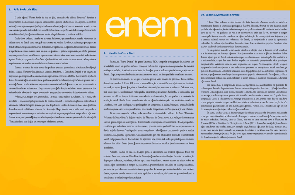 Agora que você possui mais informações, pode ser que fique mais simples de ver tudo isso aplicado na prática, com exemplos do que já foi produzido pelos candidatos em anos anteriores.